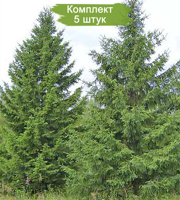 Предлагаем комплект из пяти саженцев Сибирской ели высотой до 2 метров по цене четырех. Это выгодное предложение для любителей садоводства!