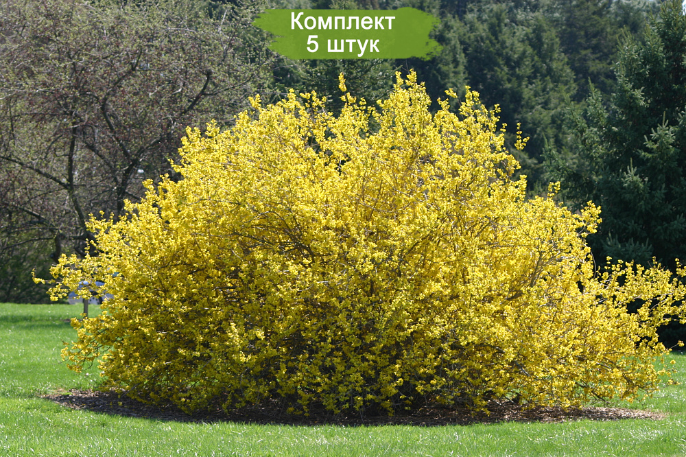 Этот набор из 5 саженцев форзиции яйцевидной станет отличным выбором для вашего сада, добавив ему ярких красок и декоративности.