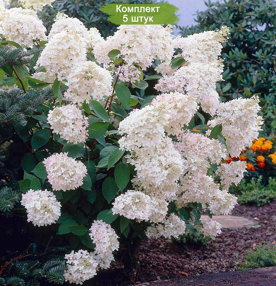 Этот комплект из 5 саженцев гортензии метельчатой Грандифлора станет отличным выбором для вашего сада, добавив ему ярких красок и изысканности.