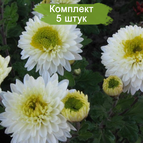 Саженцы хризантемы сорта Инга (Inga) с белыми лепестками и желто-зеленой серединой - 5 штук. Этот набор из пяти саженцев по цене четырех станет отличным выбором для вашего сада!