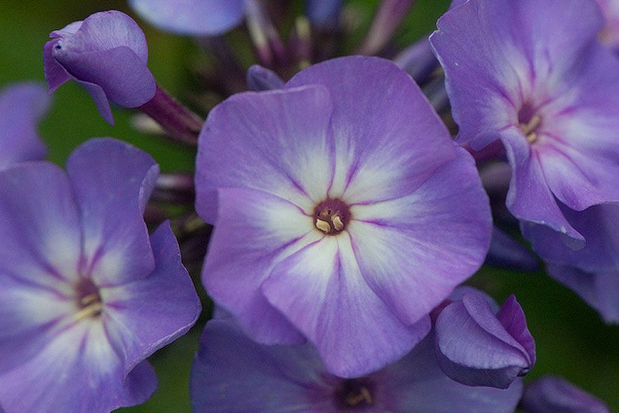 Флокс метельчатый «Блу Бой» (Blue Boy) – это уникальный сорт, который привлекает внимание своим нежным лавандово-голубым оттенком и белым глазком в центре цветка. При вечернем освещении цветы приобретают особенно выразительный голубой оттенок, создавая впечатление звездного неба. Этот сорт отличается обильным цветением и средней плотностью соцветий. Диаметр каждого цветка составляет около 2,5 см, а высота взрослого растения достигает 80-100 см. Период цветения продолжается с июля по сентябрь.
