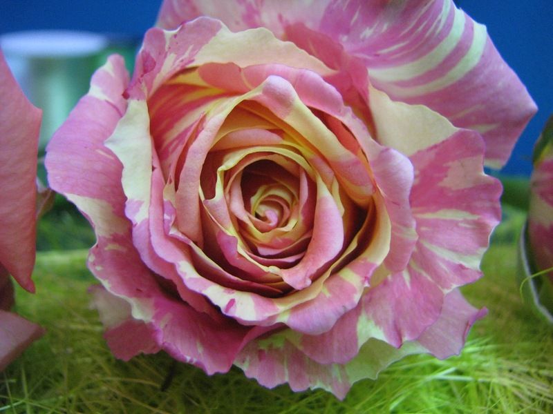Роза «Фиеста» – это уникальный сорт французской селекции, который привлекает внимание своей необычной градиентной окраской. Цветы этого сорта переходят от молочно-желтого к нежно-розовому, с лимонными и кремовыми полосками, создавая эффектный и запоминающийся вид. Распустившиеся цветы имеют ромбовидную форму, что придает им особую изысканность. С расстояния роза может казаться одноцветной, что добавляет ей дополнительного шарма. Благодаря красивым молочным переходам, этот сорт часто называют «карамельной розой».