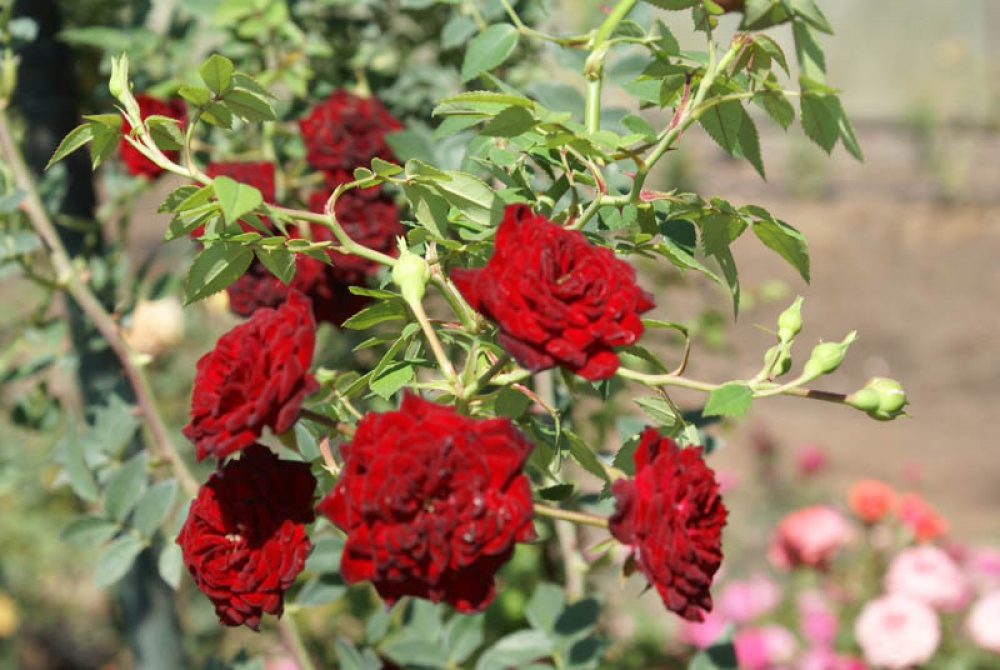 Роза Red Cascade (Рэд Каскад) словно звездное полотно, покрывающее землю своим великолепием. В период цветения этот сорт розы превращает ваш сад в живописное зрелище, благодаря множеству рубиновых бутонов, которые создают яркий алый ковер на клумбах, арках и беседках. Red Cascade образует крупные соцветия, состоящие из до 25 бутонов. Эти миниатюрные цветки, диаметром до 4 см, имеют махровую структуру и состоят из 35-50 лепестков. Аромат розы нежный и чувственный, наполняющий сад сладкими нотками.