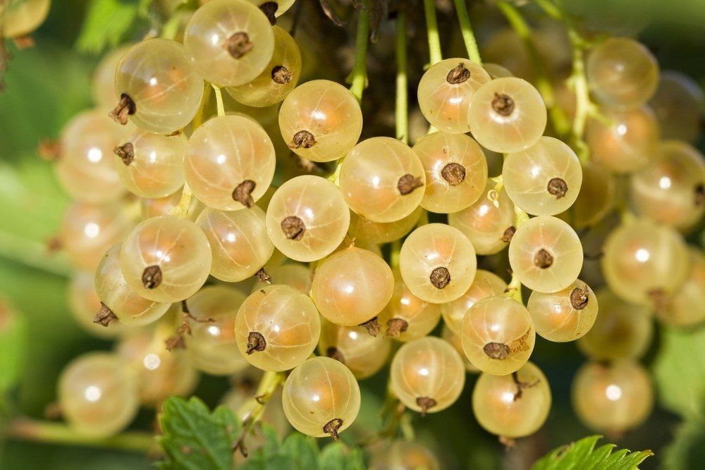 Белая смородина – это разновидность красной смородины, отличающаяся прозрачными ягодами, через которые просвечиваются косточки. Вкус ягод отличается от черной смородины своей необычной кислинкой. Белая смородина относится к семейству Крыжовниковые и представляет собой листопадный кустарник. Высота кустарника обычно не превышает 1 метр, но в благоприятных условиях может достигать 3 метров. Корневая система мощная, схожая с красной смородиной. Листья трехлопастные с зубчатыми краями, темные сверху. Цветение происходит в конце весны, когда появляются маленькие зеленые лепестки, собранные в кистевидные соцветия. Плоды созревают в начале лета и имеют сладкий вкус с легкой кислинкой.
